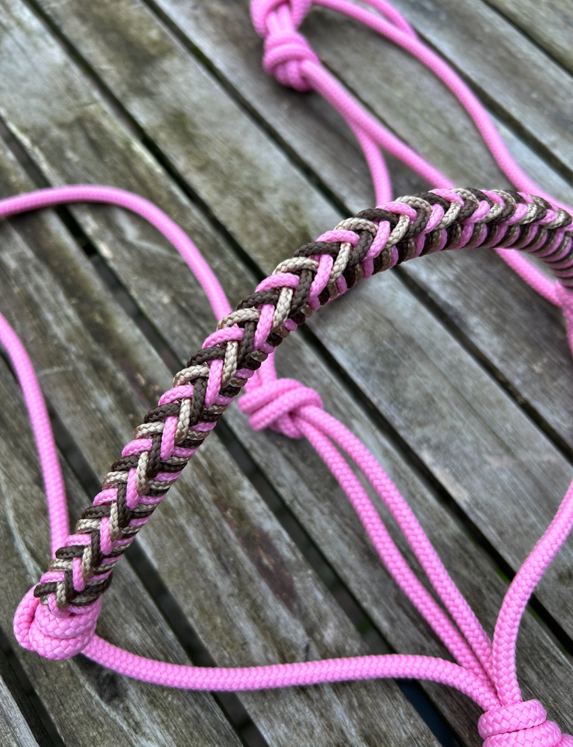 Voeg een zachte en stijlvolle touch toe aan je uitrusting met dit charmante touwhalster in babyroze, afgewerkt met een gevlochten neusband in babyroze, beige en bruin. De combinatie van zachte pastelkleuren met warme, natuurlijke tinten zorgt voor een elegante en harmonieuze uitstraling – perfect voor paarden die subtiel willen opvallen met klasse.