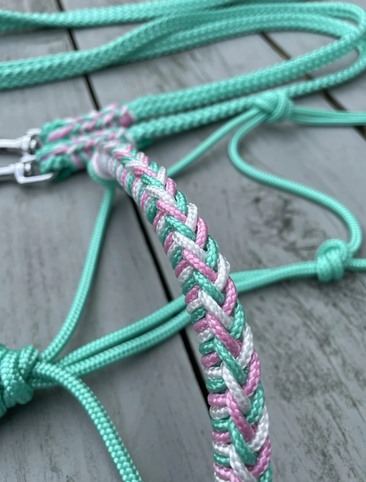 Touwhalster Mintgroen met Gevlochten Neusband in Mintgroen, Wit en Babyroze